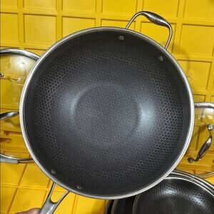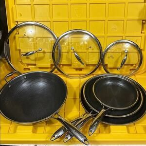 HEXCLAD 7 Piece Nonstick Stainless Steel Frying Pan Set 8 10 12- Lids Wok M $600