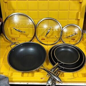 HEXCLAD 7-Piece Nonstick Stainless Steel Frying Pan Set 8 10 12- Lids Wok $600