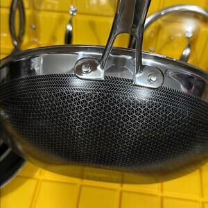 HEXCLAD Hybrid 7 Piece Nonstick Stainless Steel Frying Pan Set 8 10 12" Lids Wok