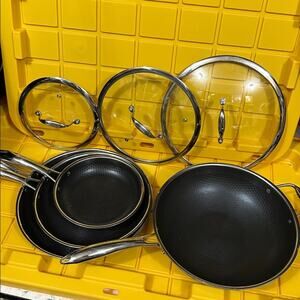 HEXCLAD Hybrid 7 Piece Nonstick Stainless Steel Frying Pan Set 8 10 12" Lids Wok
