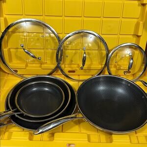 HEXCLAD Hybrid 7 Piece Nonstick Stainless Steel Frying Pan Set 8 10 12" Lids Wok