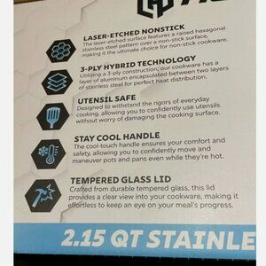 HEXTEC 2.15 Qt 3 Ply Hybrid Sauce Sauce Pan w/ Tempered Glass Lid Kitchen Cookware NEW