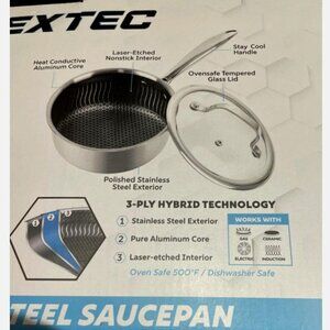 HEXTEC 2.15 Qt 3 Ply Hybrid Sauce Sauce Pan w/ Tempered Glass Lid - NIB