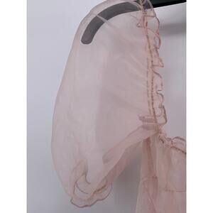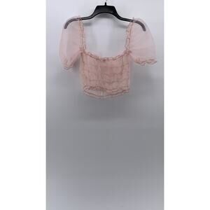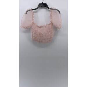 HEY BABE Women's Light Pink Sheer Puff Short Sleeve Off-The-Shoulder Cropped Top SZ S