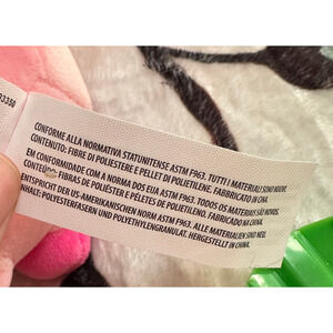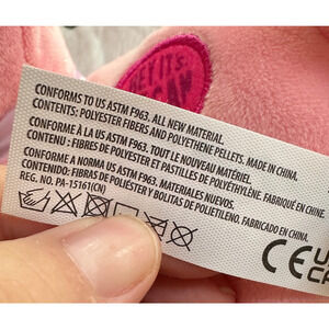 • Features: Embroidered eyes, heart nose, ribbon bow, signature patch on side