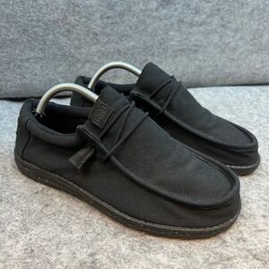 HEYDUDE Wally Black Canvas Casual Comfort Loafer Slip On Shoes Mens 9