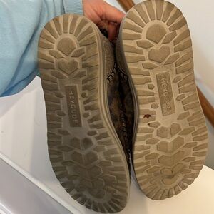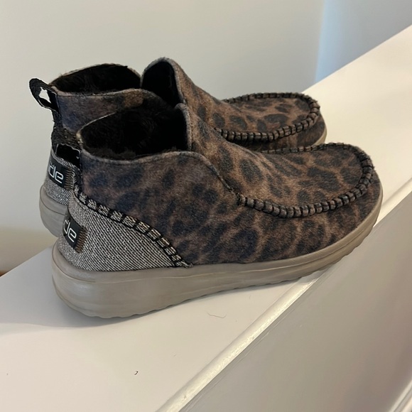 HEYDUDES in excellent condition. Worn twice. Adorable. I cannot find a size on them anywhere but I wear an 8.5 and they’re perfect. Purchased from HEYDUDES website.