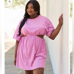 HEYSON Summer Field Full Size Cutout T-Shirt Dress in Carnation Pink 2XL