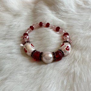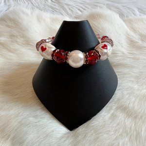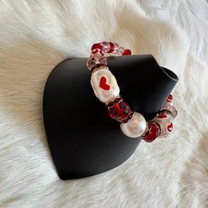 HEart Stretch Bracelet Red Pink Facet Glass Enamel Rhinestone Love 13430