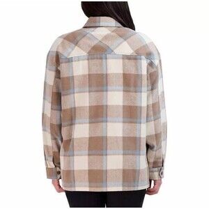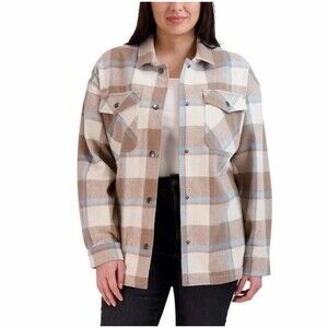 HFX Flannel Shirt Jacket Women's Medium Plaid Neutral Heavy Fleece Fall NWT