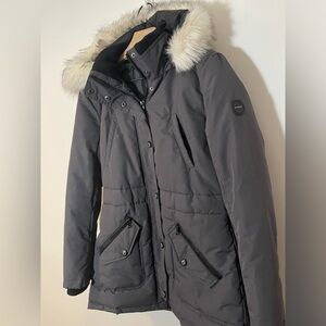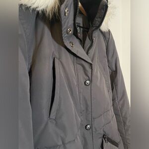 HFX Halifax Traders Gray Parka Puffer Coat with Faux Fur Removable Hood Size S