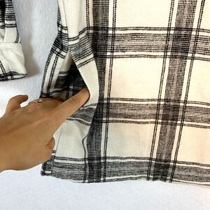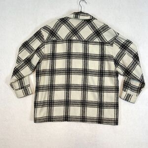 HFX Jacket Shacket Womens Medium White Black Plaid Snap Button Up Pockets Wool