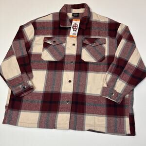 HFX Ladies Shirt Jacket Shacket Size XXL 2XL Red Plaid Cozy Fit Warm Snap Up