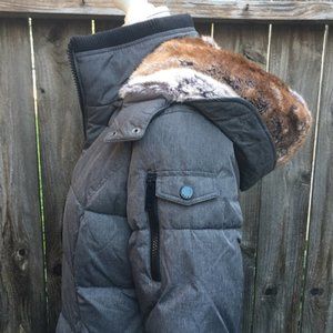 HFX Nolan Womens Puffer Jacket Coat Faux Fur Gray Grey Small Removable Hood