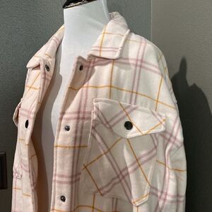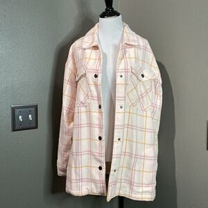 HFX Plaid Short Shacket Snap Button Down Shirt Pink Orange