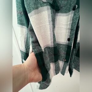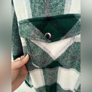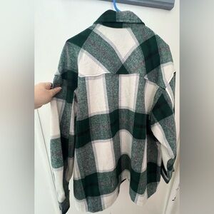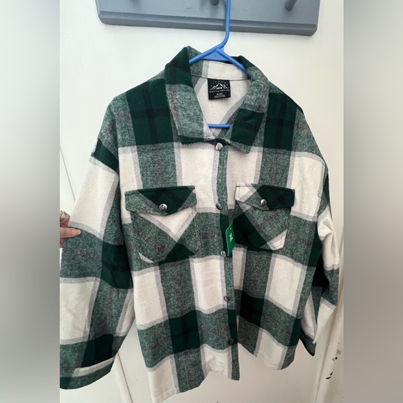 Shacket. Heavyweight jacket like shirt. Brand new with tags. Green Plaid. Snap button closure, 4 pockets. Great for layering underneath. Slightly itchy from Wool content, recommend wearing long sleeves underneath. Never worn, brand new with tags. Unisex.
