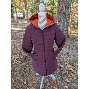 HFX Women’s S Hooded Long Puffer Coat Packable Jacket Zip Plum Org. Warm Winter