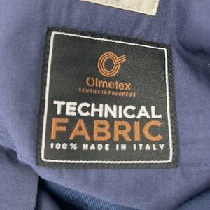 Elevate your wardrobe with these HGBB STUDIO Olmetex Navy Seal Trousers in size Medium. Crafted from premium water-repellent technical fabric by Olmetex, these trousers blend style and functionality with a sleek Iris Blue finish. Featuring belt loops, four-pocket styling, a zip-fly, and front waistband pleats, they offer a tailored fit perfect for any occasion. Made in Italy with a cotton-polyethylene blend, these pants ensure durability and comfort. Brand new with tags—grab this versatile piece from Copenhagen-based HGBB STUDIO today!