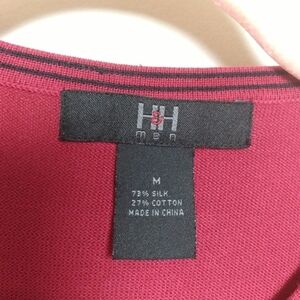 H&H Red Silk & Cotton Blend V Neck Men's Sweater Size Medium