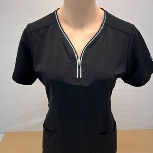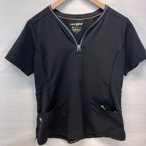 HH360 Sonia Black Zipper Neckline Scrub Top Size Medium
