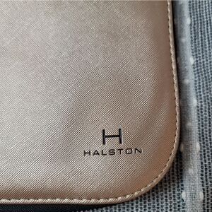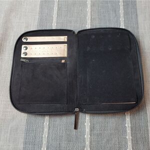 Travel H Halston travel jewelry portfolio case. Space for rings, bracelets, and necklaces.