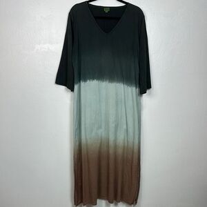 H.H.G. Gradient Relaxed Fit 3/4 Sleeve V-Neck Maxi Dress Size L