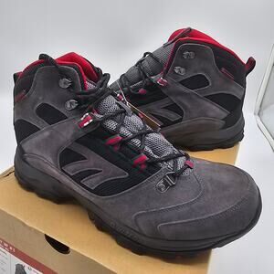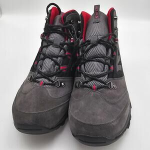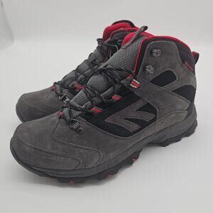 HI TECH mens Flagstaff waterproof hiking boots grey red leather boots. SZ 12