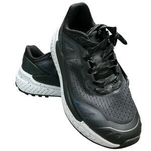 Stylish black and gray athletic sneakers with a sleek design. Perfect for running or casual wear.