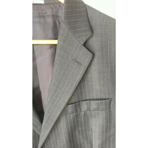 Excellent condition recent Hickey Freeman jacket. "Mechanized." Made in USA. 3-btn. Gray with blue and white stripe. Double vented. 44R. Retails for about $1495.