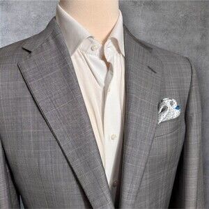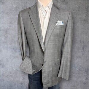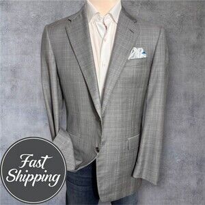 HICKEY FREEMAN Mens 42L Gray Wool Blazer Sport Coat Two Button Windowpane Jacket