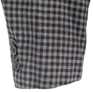 HICKEY FREEMAN Mens Blazer SIZE 40R Wool Silk Linen Two Button Gray Black Check