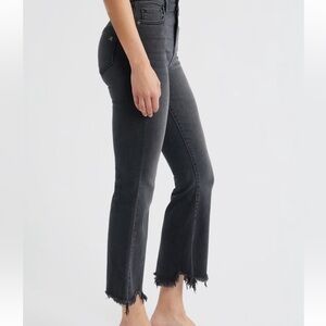 Elevate your style with these chic black flare jeans featuring a trendy frayed hem. Perfect for adding a touch of edge to your casual wardrobe. Worn once - like new.