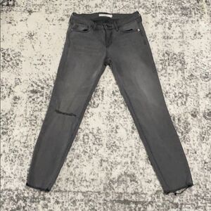 HIDDEN Grey Wash Skinny Raw HEM Distressed JEANS size 27 by 26.5 “ measurements in pics