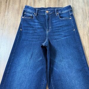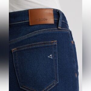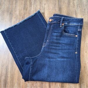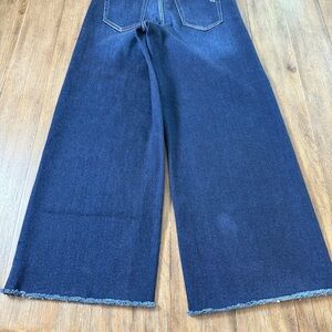 HIDDEN High Rise Wide Leg Jeans Frayed Hem Dark Blue Stretchy ankle crop
