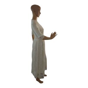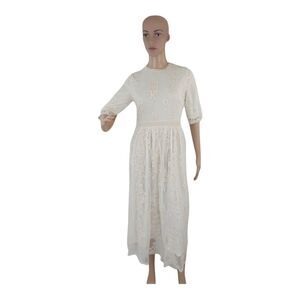 HIDDEN ALLEN Women's Ivory Embroidered Lace Short Sleeve Midi Dress Size Medium