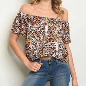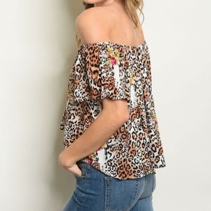 HIGH / LOW LEOPARD PRINT OFF SHOULDER TOP