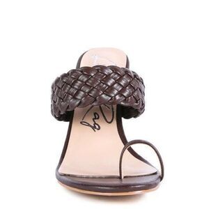 These expertly crafted woven strap toe ring sandals feature a high heel design that will surely catch attention. They are available in warm chocolate and various shades of brown, making them versatile essentials perfect for any occasion. From basic denim to formal floor-length dresses, these pointed high heel shoes are a must-have for all fashion-forward individuals.