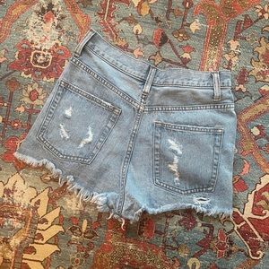 Distressed high rise Jean shorts with metal hoop detailing extremely comfortable