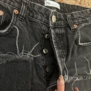 black high rise mom jeans with fringe bottom size 6