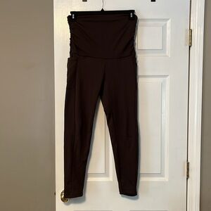 HIGHDAYS Fleece Lined Maternity Leggings with Pockets - Brown
