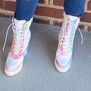 Cute tie dye chunky heel booties l! Fits true to size! #highlights!