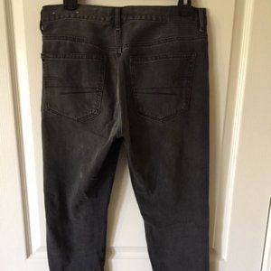 Size 6 high-waisted American Eagle Girlfriend Jean in faded black (charcoal gray). NO STRETCH soft denim. 11.5" rise & fitted at the top. Slim through the leg with a tapered leg opening. Button fly. Very good quality.