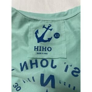 This is a HIHO Surf Shirt in size XS, designed with a Compass UPF 50+ pattern inspired by St John Virgin Islands. The swim top style is a Swim Shirt in a Sea Green color. It is a unisex adults piece and the size type is Plus.
