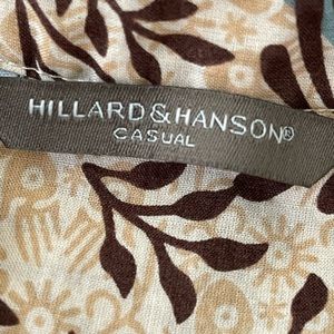 HILARD & HANSON Woman’s Brown & Blue Cap Sleeve Cotton Button Down Top size L