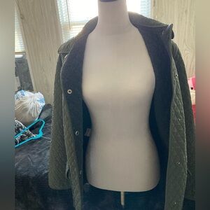 -dark green coat