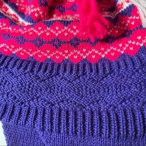 HI-LINE KNITS WOOL SKI HAT with ear flaps and cute tassels. Pink purple & White