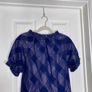 HILL HOUSE Katherine Nap Dress Navy Glitter Check Size XS Puff Sleeves