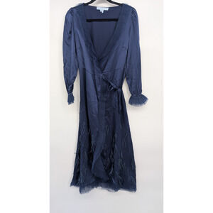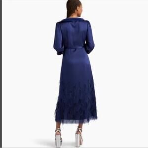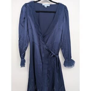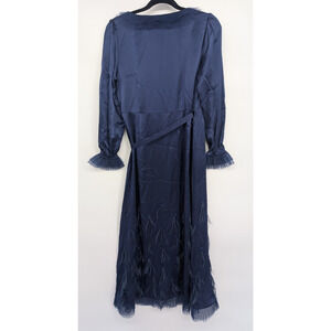 HILL HOUSE The Dolly Silk Robe Feather Embellished Size S Navy #1F510
