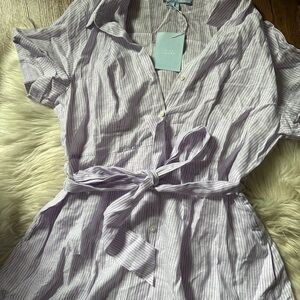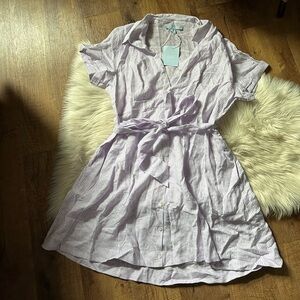 HILL HOUSE The Laura Dress In Lilac Striped Lenin