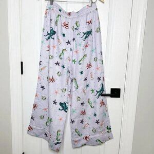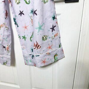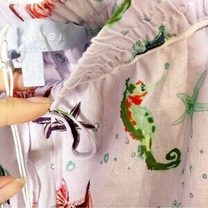 HILL HOUSE The Skylar Pant Sea Creatures 100% Linen Pants Size M Beach Ocean